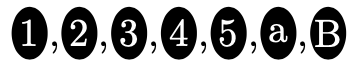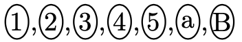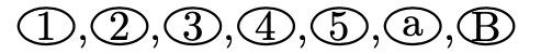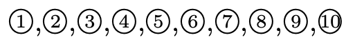丸付き文字は、LaTeXで、\textcircled{1} が用意されているが、数字と丸のサイズが合わないので、\scriptsize をつけて文字の大きさを調整しなければなりません。emath.sty では、この丸付き文字を幾種類か用意してくれています。すぐに忘れるのでここにメモしておきます。