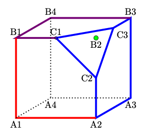\draw[line width=2pt,violet] (C1)--(B1)--(B4)--(B3);